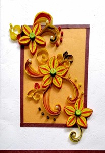 Hope this will be helpful.i have listed how i gift my friends. Secure the end with glue. Now stick all the curves and loops on the card in such a way that it cover the major part of the card. Quilled peach blossom greeting card. As well as using quilling on cards, you can also make some fantastic quilled jewellery, like this quilled necklace.